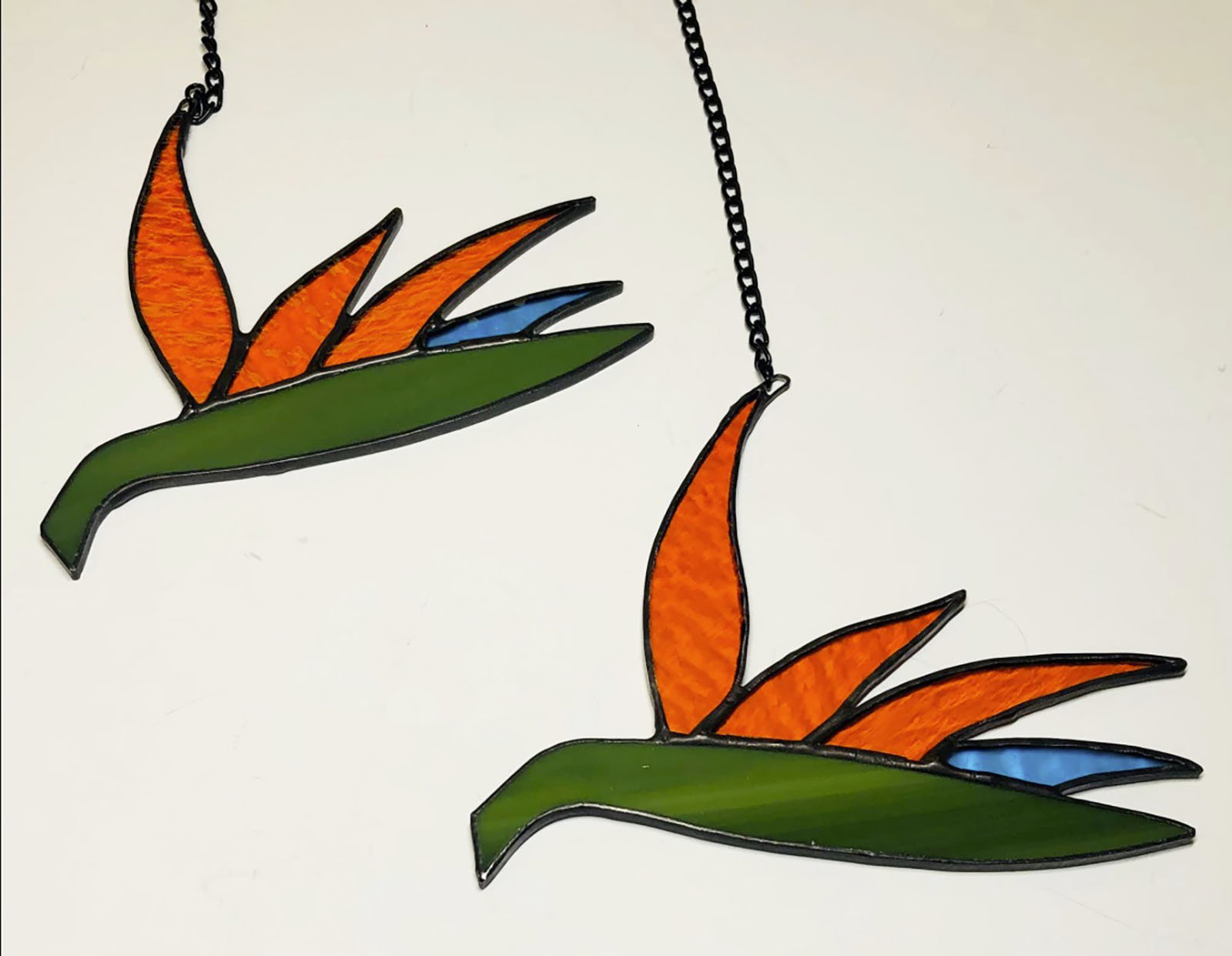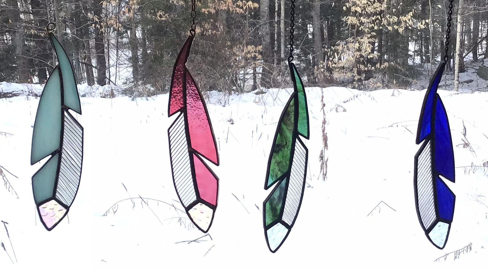 Feathers with strong silhouette and vibrant glass choices.